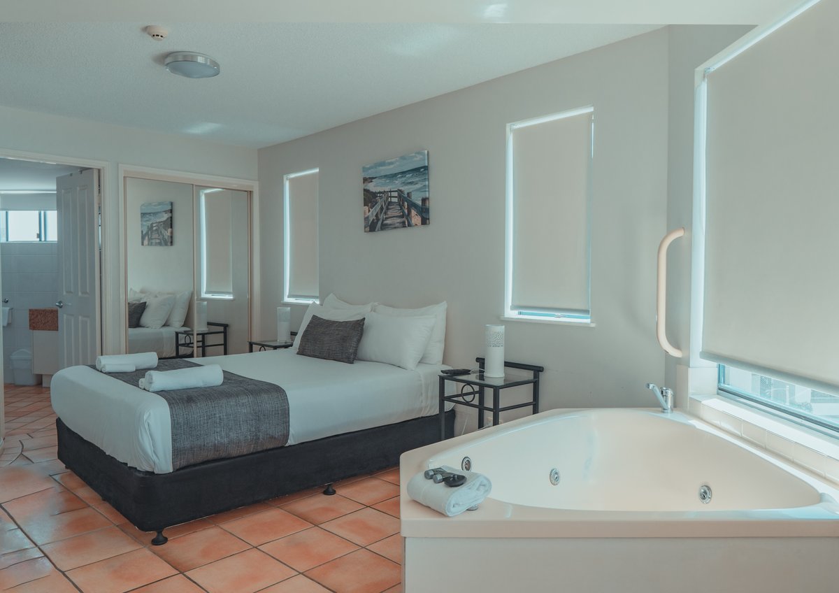 This top floor two bedroom apartment has spectacular waterfront views, taking in the Pumicestone Passage through Golden Beach, the tip of Bribie Island and ocean views out to Moreton Island. It boasts a private rooftop where you can have BBQ dinner you have just cooked. Relaxing with nothing but amazing water views which ever way you look. It has a fully equipped kitchenette and laundry facility. Bathroom has hair dryer, shampoo, conditioner and body wash.
